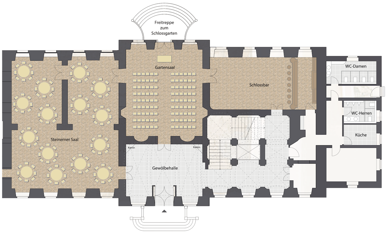 Die Anmut dieses barocken Ensembles, eingebettet in einen malerischen Park, verspricht das perfekte Ambiente für Veranstaltungen, die in Erinnerung bleiben – sei es eine Traumhochzeit oder Jubiläumsfeier, ein Business Event oder eine Tagung.